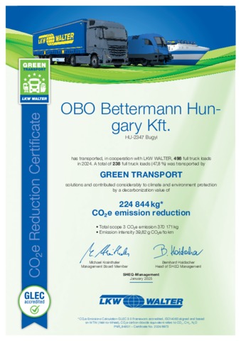 Certificate - Green Transport LKW WALTER - Hungary Kft.