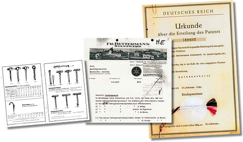 Franz Bettermann received the patent for his invention of a series clip in 1936 and the certificate from the Patent Office of the German Empire. Even the founder was a friend and promoter of innovations.