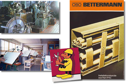 This year is a particularly special one for the company. That was when the name was created. It still exists today: OBO Bettermann. OBO stands for "Without drilling, chiselling, plastering, cementing, etc. It means: Saving time, costs and annoyance" and company adverts of the time said "our OBO anchors can be knocked into concrete and masonry without any trouble simply using the corresponding flattener."