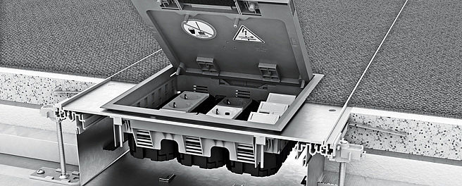 The different construction types of the cassettes allow dry, moist and wet care and are, to some extent, also suitable for floors requiring mechanical cleaning. With wet-care floor coverings, requirements (from the DIN EN 50085-2-2) mean that service outlets with tube body are to be used for device installation.