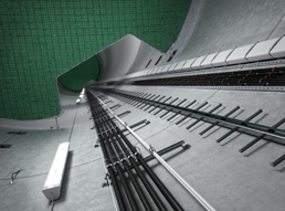 Vertical ladder systems are the optimum solution for vertical routing. A further option is routing directly on the wall. Profile rails with the appropriate clamp clips or individual clips are fastened directly on the wall or on to a steel structure.