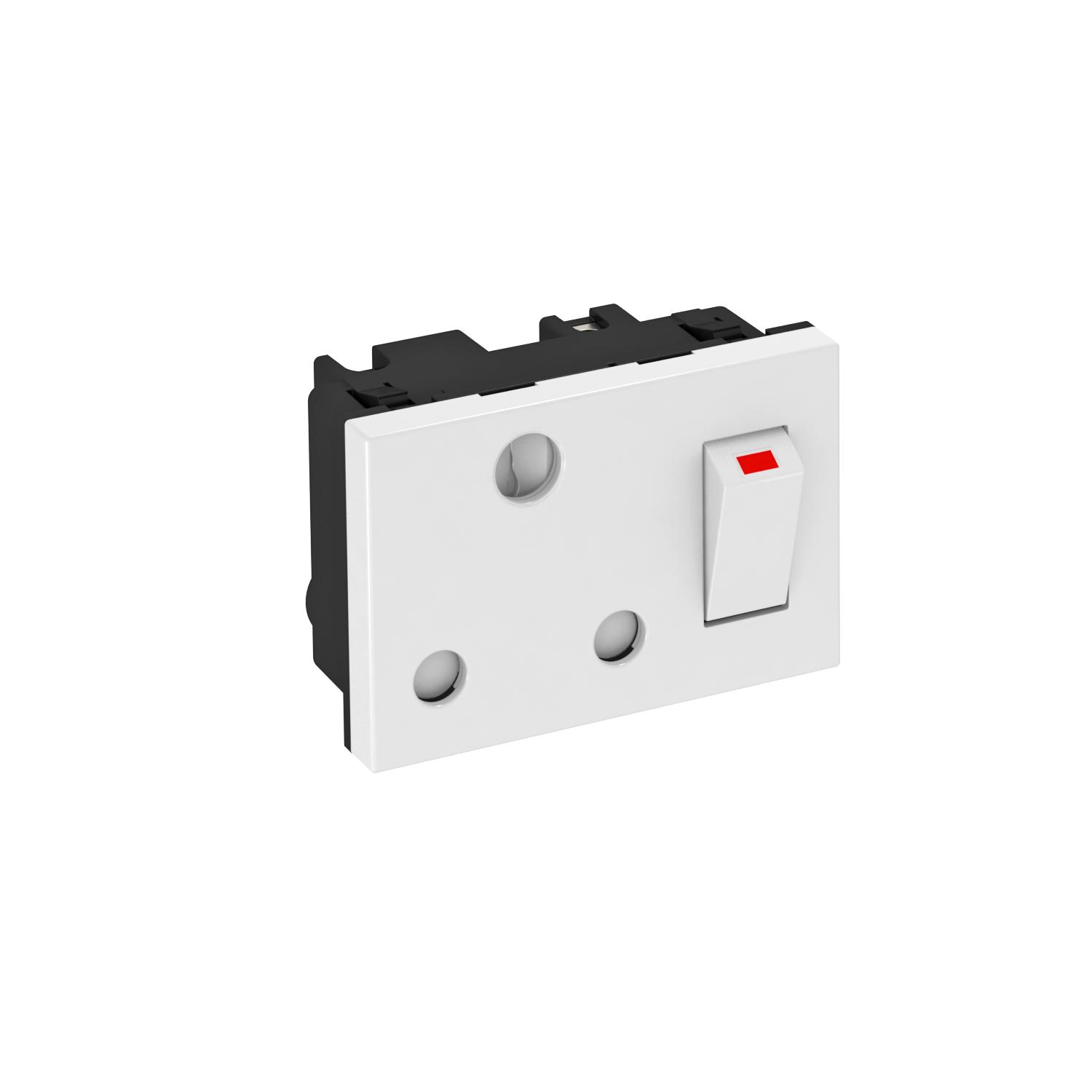 Product descriptionSocket, single 0°, with switch, South Africa/India, conforming to BS 546, with increased touch protection, with screw terminals, 2-pin, 16 A, 250 V~.