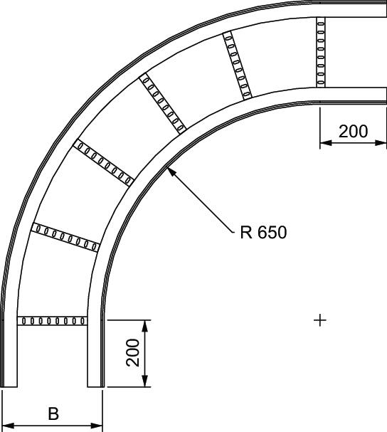 Product description90° bend, horizontal, for all AI50 cable ladder types of 50 mm side height.