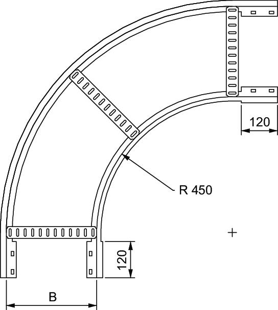 Product description90° bend, horizontal, for all PS100 cable ladder types of 100 mm side height.