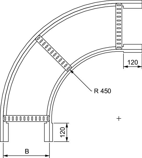 Product description90° bend, horizontal, for all PS75 cable ladder types of 75 mm side height.