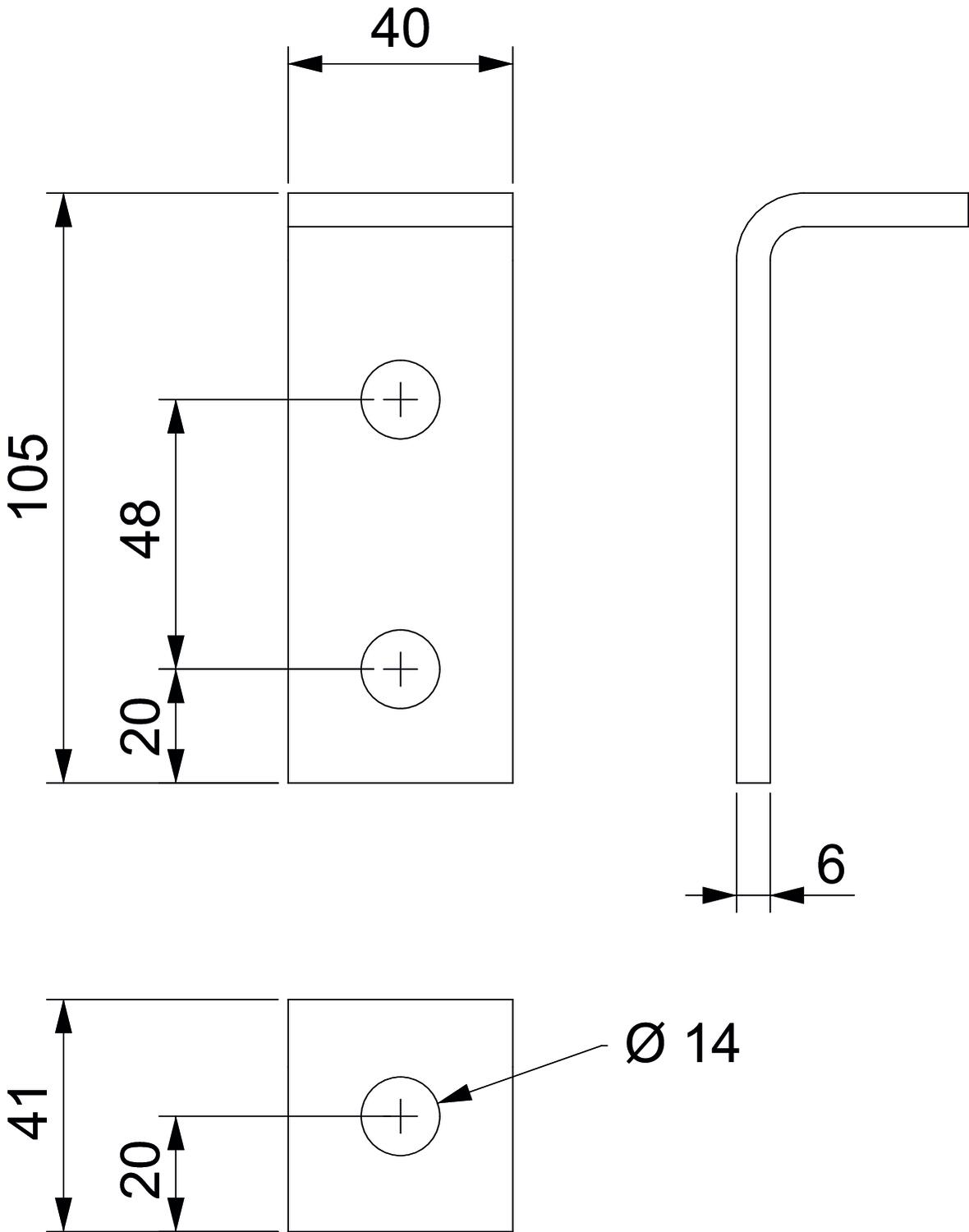 Dimension 110x45x40 Height 40 mm Length 110 mm Material Steel Surface Hot-dip galvanised Width 45 mm - All types