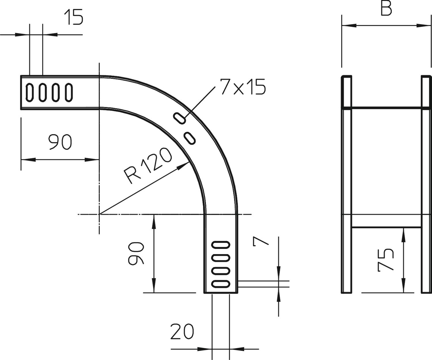 Bend (angle) 90° Change of direction Vertical, falling CO2 Footprint (GWP) Cradle-to-Gate 2,8677 kg CO2e / 1 Piece Colour zinc Connector version Without connectors Dimension 35x300 Dimension B 300 mm Height 1 in Height 35 mm Maintain electrical functions no Material Steel Mounting perforation in base no NATO hole pattern no Plate thickness 1 mm Rustproof steel, pickled no Side perforation no Surface Strip galvanized Type of connector, cable support system Screwed Wide-span version no Width 12 in Width 300 mm - All types