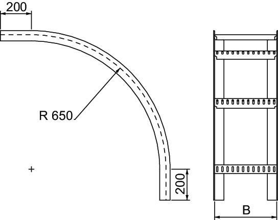 Accessory part radius = 650 mm. Accessory parts with a radius of 1,000 mm available on request.
