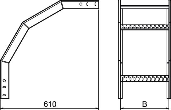 Product description90° vertical bend, falling, for all OL55 cable ladder types of 55 mm side height.