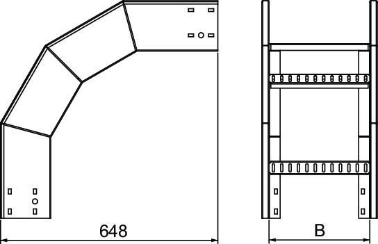 Product description90° vertical bend, falling, for all PS150 cable ladder types of 150 mm side height.