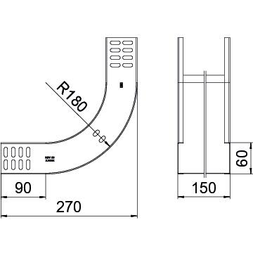Product description90° rising vertical bend, for all cable tray types of 60 mm side height.