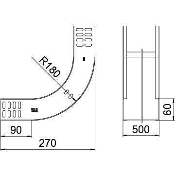 Bend (angle) 90° Change of direction Vertical rising CO2 Footprint (GWP) Cradle-to-Gate 5,8557 kg CO2e / 1 Piece Colour zinc Connector version Without connectors Dimension 60x500 Dimension B 500 mm Dimension W 500 mm Height 60 mm Height 2 in Maintain electrical functions no Material Steel Mounting perforation in base no NATO hole pattern no Plate thickness 1 mm Rustproof steel, pickled no Side perforation no Surface Strip galvanized Type Bend, rigid Type of connector, cable support system Screwed Wide-span version no Width 20 in Width 500 mm - All types