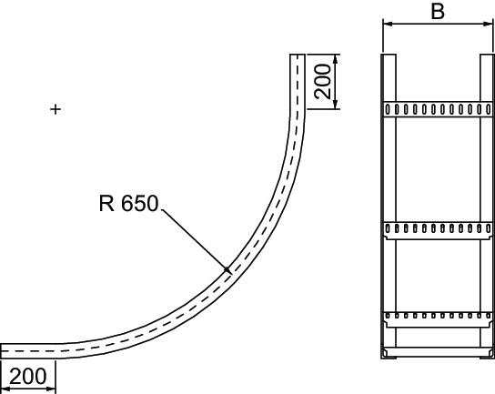 Product description90° vertical bend, rising, for all MS50 cable ladder types of 50 mm side height.