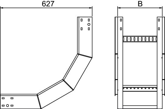 Product description90° vertical bend, rising, for all PS100 cable ladder types of 100 mm side height.