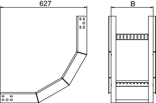 Product description90° vertical bend, rising, for all PS100 cable ladder types of 100 mm side height.