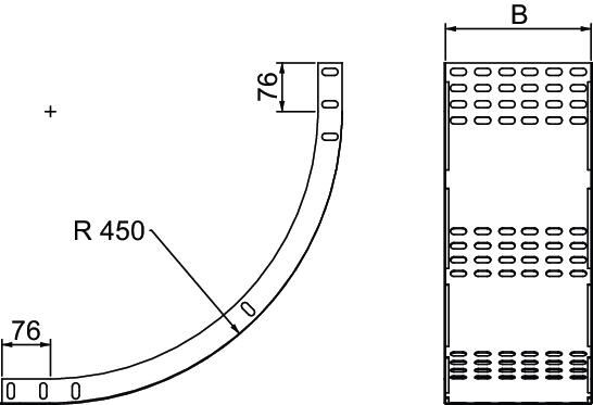 Product description90° vertical bend, rising, for PT38 cable tray types.