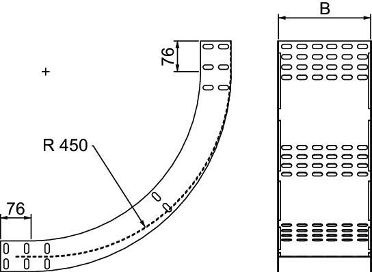 Product description90° vertical bend, rising, for PT76 cable tray types.