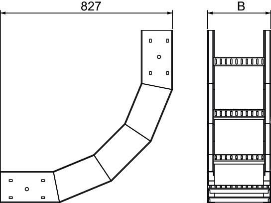 Product description90° vertical bend, rising, for all SSP150 cable ladder types of 150 mm side height.