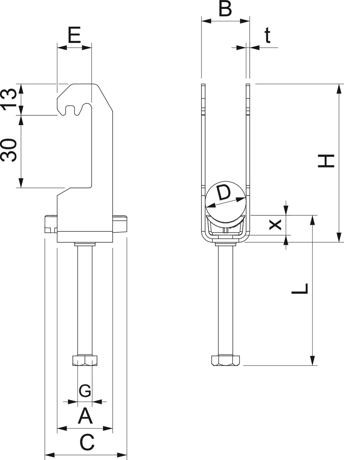 Cable diameter, max. 28 mm Cable diameter, min. 22 mm Clamping range D, max. 28 mm Clamping range D, min. 22 mm CO2 Footprint (GWP) Cradle-to-Gate 0,2 kg CO2e / 1 Piece Dimension 22-28mm Height 75 mm Length 20 mm Material Steel Surface Hot-dip galvanised Width 33 mm - All types