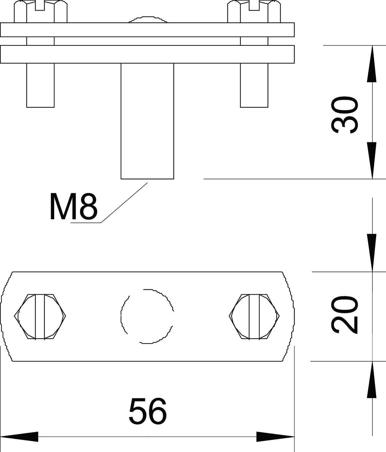 Cable dimensions 30 x 4 mm flat CO2 Footprint (GWP) Cradle-to-Gate 0,3036 kg CO2e / 1 Piece Conductor fastening type With screw clip Dimension 30mm Dimension B 56 mm Dimension G M8 mm Fit FL 30 mm High voltage-resistant, insulated version no Holder fastening type Drill hole with M-thread Material Die-cast zinc Material of the base Die-cast zinc Material of the crossbar Die-cast zinc Material of the holder Die-cast zinc Surface Electrogalvanized Thread M8 Thread metric 8 Use in Ex area yes - All types