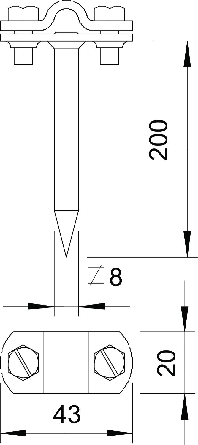 Cable dimensions 8−10 mm round Conductor fastening type With screw clip Dimension 200mm Dimension L 200 mm Fit Rd 8-10 mm High voltage-resistant, insulated version no Holder fastening type With impact pin Length 200 mm Material Steel Material of the base Steel Material of the crossbar Steel Material of the holder Steel Surface Hot-dip galvanised Use in Ex area yes - All types