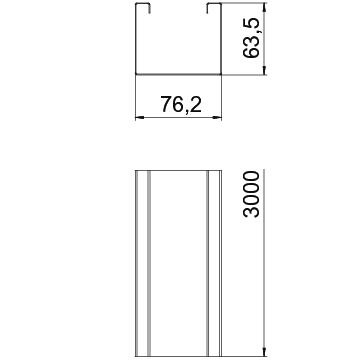 Antibacterial treatment no Dimension 77x64x3000 Height 63,5 mm Length 3000 mm Material Steel Plate thickness 0,8 mm Surface Strip galvanized Width 76,2 mm - All types