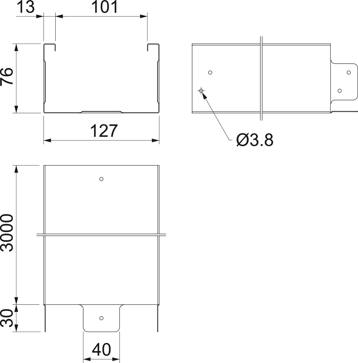 Antibacterial treatment no Dimension 127x77x3000 Height 76,2 mm Length 3000 mm Material Steel Plate thickness 0,8 mm Surface Strip galvanized Width 127 mm - All types