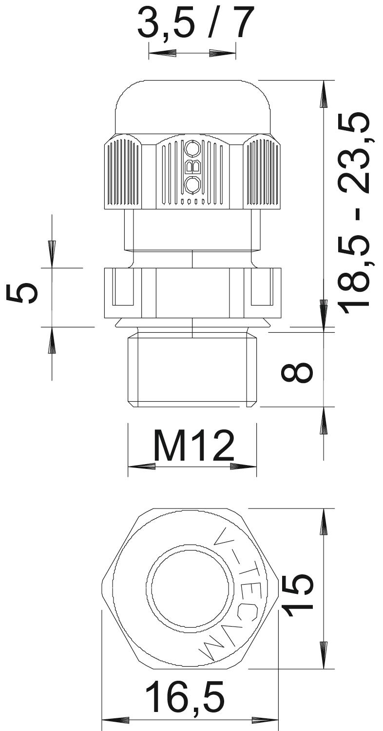 Product descriptionCable gland with metric connection thread in cap nut design, suitable for junction boxes, housings, distributor boxes in private and industrial areas. With strain relief and integrated sealing lip, tested according to DIN EN 62444. Protection class IP68. Can be used between –20°C and +65°C.