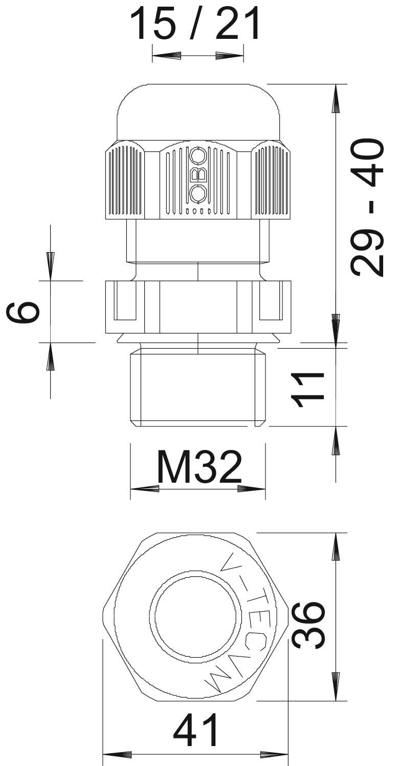 Bend protection no CO2 Footprint (GWP) Cradle-to-Gate 0,1045 kg CO2e / 1 Piece Colour Light grey; RAL 7035 Dimension M32 Dimension E 41 mm Dimension L max. 40 mm Dimension L min. 29 mm Dimension L1 11 mm Dimension L2 6 mm explosion-proof no Fibre-glass reinforced no Flame-resistant acc. to VDE 0471/DIN 695 Part 2-1, test temperature 650°C Flat cable gland no For Ex zone Without For Ex zone dust Without For Ex zone gas Without Halogen-free yes Hexagonal corner dimension 41 mm Impact-resistant no Material Polyamide Nominal thread size 32 Permitted temperature range, max. 65 °C Permitted temperature range, min. -20 °C Protection rating IP68 Sealing area D, max. 21 mm Sealing area D, min. 15 mm Sealing insert, multiple no Splittable gland no Strain relief option yes Thread M32 x 1,5 Thread increase 1,5 mm Thread length 11 mm Thread type Metric Type of seal Sealing ring Unstable torque 7,5 Nm Version for Straight WAF 36 With locknut no - All types