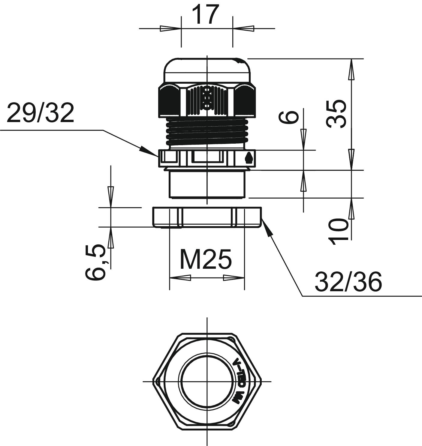 Bend protection no CO2 Footprint (GWP) Cradle-to-Gate 0,0783 kg CO2e / 1 Piece Colour Pastel orange; RAL 2003 Dimension M25 Dimension E 32 mm Dimension E1 (mm) 32 mm Dimension E2 36 mm Dimension G M25 x 1,5 mm Dimension L max. 35 mm Dimension L min. 26 mm Dimension L1 10 mm Dimension L2 6 mm Dimension L3 6,5 mm Fibre-glass reinforced no Flame-resistant acc. to VDE 0471/DIN 695 Part 2-1, test temperature 650°C Flat cable gland no For Ex zone Without For Ex zone dust Without For Ex zone gas Without Halogen-free yes Impact-resistant no Material Polyamide Permitted temperature range, max. 65 °C Permitted temperature range, min. -20 °C Protection rating IP68 Sealing area D, max. 17 mm Sealing area D, min. 9 mm Sealing insert, multiple no Splittable gland no Strain relief option yes Thread M25 x 1,5 Thread increase 1,5 mm Thread length 10 mm Thread type Metric Unstable torque 5 Nm WAF 29 WAF 1 29 mm WAF 2 32 mm With locknut yes - All types