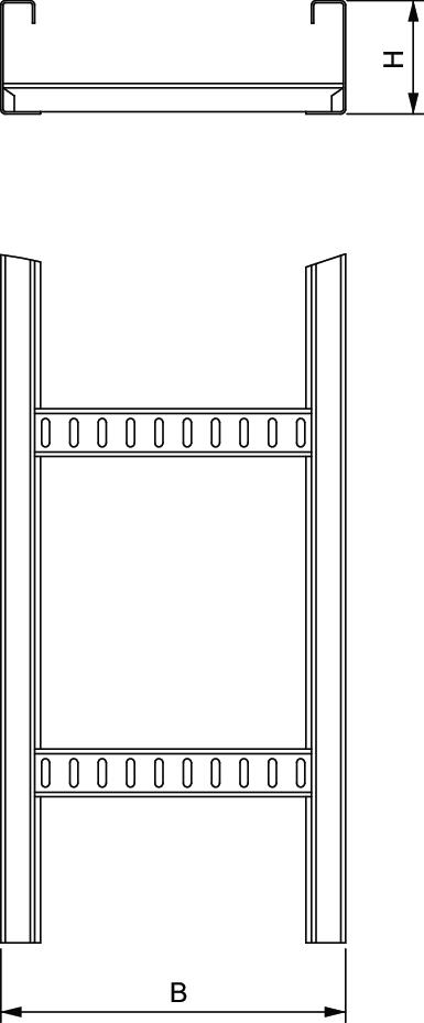 Dimension 6000x200x100 Dimension B 200 mm Height 100 mm Length 6000 mm Material Steel Rail thickness 2 mm Rung distance 300 mm Surface Hot-dip galvanised Width 200 mm - All types