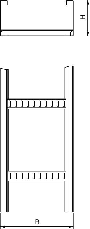Dimension 6000x200x150 Dimension B 200 mm Height 150 mm Length 6000 mm Material Steel Rail thickness 2 mm Rung distance 300 mm Support spacing 5.0 m 1,8 kN/m Support spacing 6.0 m 1,4 kN/m Support spacing 7.0 m 1 kN/m Support spacing 8.0 m 0,7 kN/m Surface Hot-dip galvanised Width 200 mm Technical data