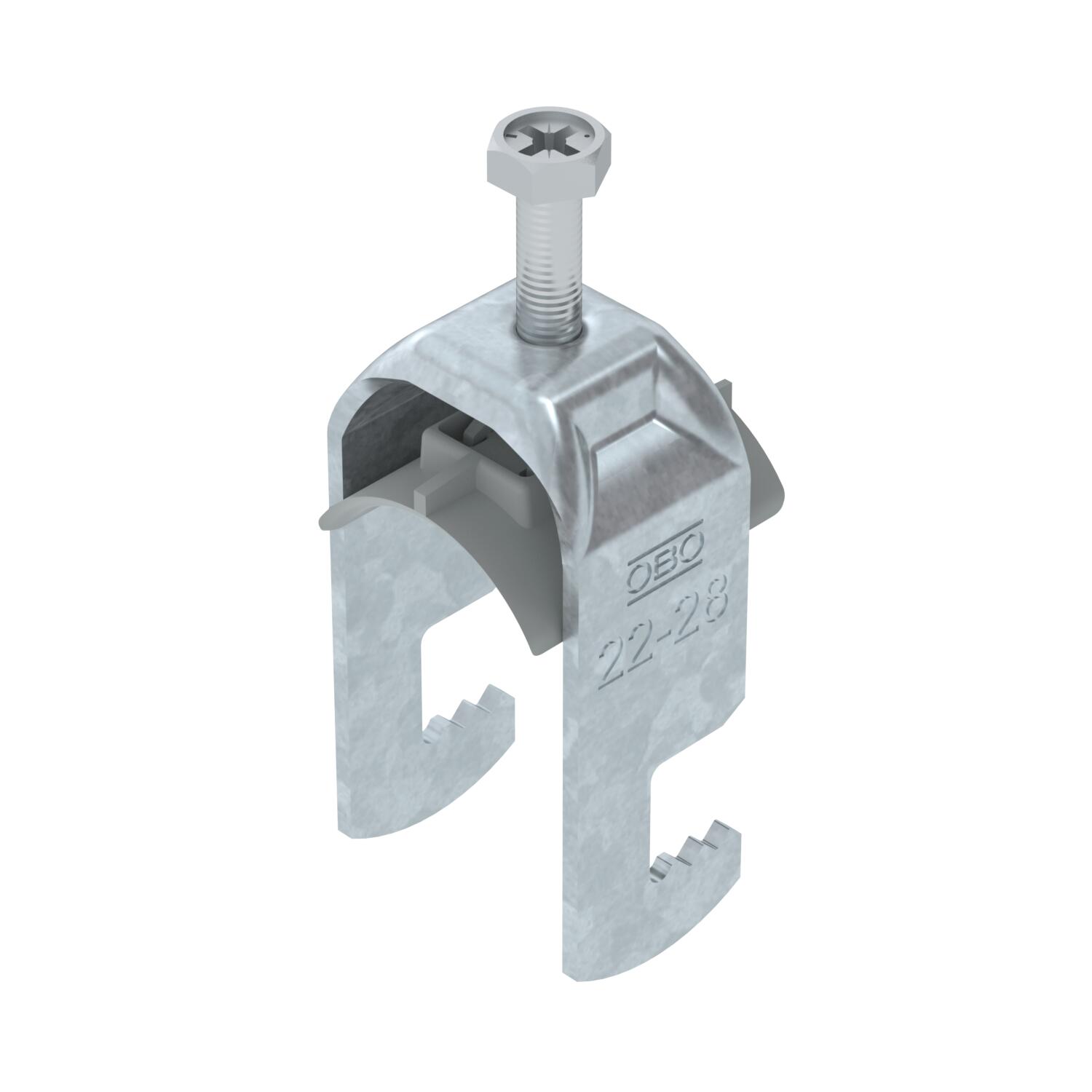 Clamping range D, max. 28 mm Clamping range D, min. 22 mm CO2 Footprint (GWP) Cradle-to-Gate 0,1335 kg CO2e / 1 Piece Dimension 22-28mm Dimension A 22,5 mm Dimension B 33 mm Dimension C 34 mm Dimension G (mm) M6 Dimension H 64 mm Dimension L 35 mm Dimension t 2 mm For pipe diameter, max. 28 mm For pipe diameter, min. 22 mm Halogen-free yes Height 64 mm Length 22,5 mm Length of external dimensions 34 mm Material Steel Material addition Steel Material of trough Plastic Material quality of trough Polypropylene Max. Tightening torque 3 Nm Mounting type Flat profile Number of cables/pipes 1 Plate thickness 2 mm Slot width 10 mm Surface Hot-dip galvanised Surface addition hot galvanised Thread M6 Width 33 mm With counter-trough no With plastic trough yes - All types