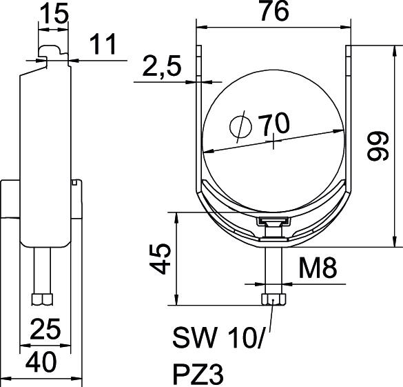 Clamping range D, max. 22 mm Clamping range D, min. 16 mm CO2 Footprint (GWP) Cradle-to-Gate 0,1729 kg CO2e / 1 Piece Dimension 16-22mm Dimension A 22,5 mm Dimension B 27 mm Dimension C 34 mm Dimension G (mm) M6 Dimension H 85 mm Dimension L 47 mm Dimension t 1,5 mm For pipe diameter, max. 22 mm For pipe diameter, min. 16 mm Halogen-free yes Height 85 mm Length 22,5 mm Length of external dimensions 34 mm Material Steel Material addition Steel Material of trough Plastic Material quality of trough Polypropylene Max. Tightening torque 3 Nm Mounting type Flat profile Number of cables/pipes 2 Plate thickness 1,5 mm Slot width 10 mm Surface Hot-dip galvanised Surface addition hot galvanised Thread M6 Width 27 mm With counter-trough no With plastic trough yes - All types