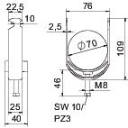Clamping range D, max. 70 mm Clamping range D, min. 64 mm CO2 Footprint (GWP) Cradle-to-Gate 0,3444 kg CO2e / 1 Piece Dimension 64-70mm Dimension A 25 mm Dimension B 76 mm Dimension C 40 mm Dimension G (mm) M8 Dimension H 109 mm Dimension L 45 mm Dimension t 2,5 mm For pipe diameter, max. 70 mm For pipe diameter, min. 64 mm for rail with slot width (with interval), max. 17 mm for rail with slot width (with interval), min. 16 mm Halogen-free yes Height 109 mm Length 25 mm Length of external dimensions 40 mm Material Steel Material addition Steel Material of trough Plastic Material quality of trough Polypropylene Max. Tightening torque 5 Nm Mounting type Profile rail Number of cables/pipes 1 Plate thickness 2,5 mm Slot width 10 mm Surface Hot-dip galvanised Surface addition hot galvanised Thread M8 Width 76 mm With counter-trough no With plastic trough yes - All types