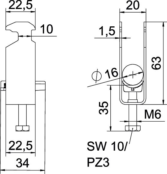 Clamping range D, max. 16 mm Clamping range D, min. 12 mm CO2 Footprint (GWP) Cradle-to-Gate 0,3223 kg CO2e / 1 Piece Dimension 12-16mm Dimension A 22,5 mm Dimension B 20 mm Dimension C 34 mm Dimension G (mm) M6 Dimension H 63 mm Dimension L 47 mm Dimension t 1,5 mm For pipe diameter, max. 16 mm For pipe diameter, min. 12 mm for rail with slot width (with interval), max. 17 mm for rail with slot width (with interval), min. 16 mm Halogen-free yes Height 63 mm Length 22,5 mm Length of external dimensions 34 mm Material Stainless steel 1.4301 Material addition Rustproof steel Material of trough Plastic Material quality of trough Polypropylene Max. Tightening torque 3 Nm Mounting type Profile rail Number of cables/pipes 2 Plate thickness 1,5 mm Slot width 10 mm Surface Bright, treated Surface addition Untreated Thread M6 Width 20 mm With counter-trough no With plastic trough yes - All types