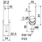 Product descriptionClamp clip with hammerhead foot, plastic pressure sleeve made of polypropylene. For vertical and horizontal mounting of 2 single cables on a C-profile rail. For a slot width 16–17 mm. With 1-start screw thread on pressure sleeve, universal hexagonal screw head WAF10, with slot and cross recess. Suitable for assembly indoors and outdoors. Multiple cables should be separated by double sleeves. We recommend the use of a counter-sleeve.