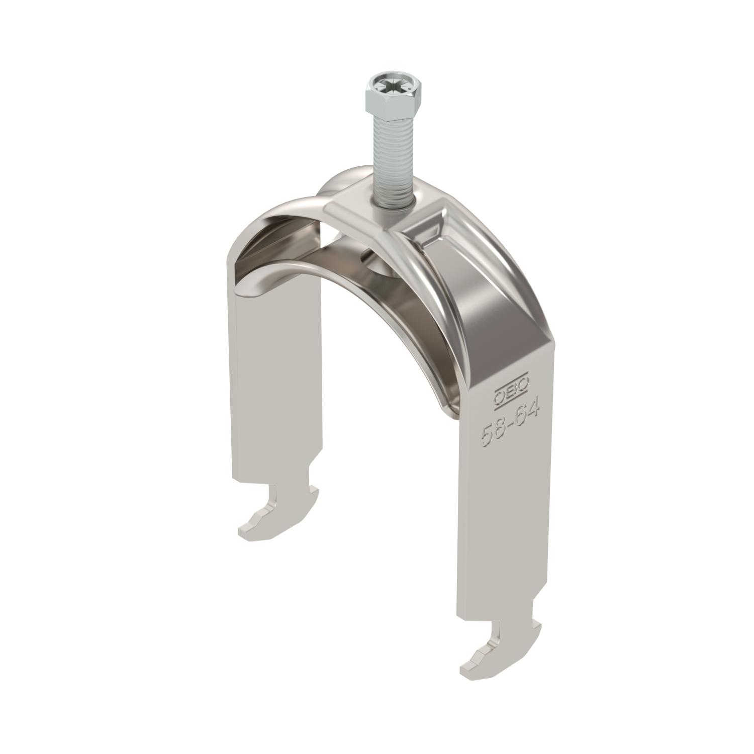 Clamping range D, max. 64 mm Clamping range D, min. 58 mm CO2 Footprint (GWP) Cradle-to-Gate 0,7992 kg CO2e / 1 Piece Dimension 58-64mm Dimension A 25 mm Dimension B 70 mm Dimension C 33 mm Dimension G (mm) M8 Dimension H 102 mm Dimension L 43 mm Dimension t 2,5 mm For pipe diameter, max. 64 mm For pipe diameter, min. 58 mm for rail with slot width (with interval), max. 17 mm for rail with slot width (with interval), min. 16 mm Halogen-free yes Height 102 mm Length 25 mm Length of external dimensions 33 mm Maintain electrical functions yes Material Stainless steel 1.4571 Material addition Rustproof steel Max. Tightening torque 5 Nm Mounting type Profile rail Number of cables/pipes 1 Plate thickness 2,5 mm Slot width 10 mm Surface Bright, treated Surface addition Untreated Thread M8 Width 70 mm With metal trough yes - All types