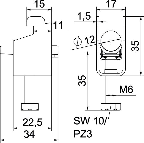 Clamping range D, max. 12 mm Clamping range D, min. 8 mm CO2 Footprint (GWP) Cradle-to-Gate 0,1716 kg CO2e / 1 Piece Dimension 08-12mm Dimension A 22,5 mm Dimension B 17 mm Dimension C 34 mm Dimension G (mm) M6 Dimension H 35 mm Dimension L 35 mm Dimension t 1,5 mm For pipe diameter, max. 12 mm For pipe diameter, min. 8 mm for rail with slot width (with interval), max. 12 mm for rail with slot width (with interval), min. 11 mm Halogen-free yes Height 35 mm Length 22,5 mm Length of external dimensions 34 mm Material Aluminium Material addition Aluminium Material of trough Plastic Material quality of trough Polypropylene Max. Tightening torque 2 Nm Mounting type Profile rail Number of cables/pipes 1 Plate thickness 1,5 mm Slot width 10 mm Surface addition Untreated Thread M6 Width 17 mm With counter-trough no With plastic trough yes - All types