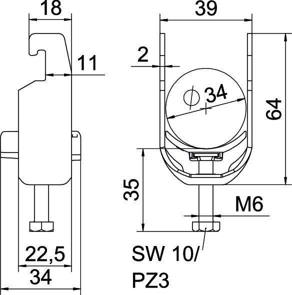Clamping range D, max. 34 mm Clamping range D, min. 28 mm CO2 Footprint (GWP) Cradle-to-Gate 0,2958 kg CO2e / 1 Piece Dimension 28-34mm Dimension A 22,5 mm Dimension B 39 mm Dimension C 34 mm Dimension G (mm) M6 Dimension H 64 mm Dimension L 35 mm Dimension t 2 mm For pipe diameter, max. 34 mm For pipe diameter, min. 28 mm for rail with slot width (with interval), max. 22 mm for rail with slot width (with interval), min. 18 mm Halogen-free yes Height 64 mm Length 22,5 mm Length of external dimensions 34 mm Material Aluminium Material addition Aluminium Material of trough Plastic Material quality of trough Polypropylene Max. Tightening torque 2 Nm Mounting type Profile rail Number of cables/pipes 1 Plate thickness 2 mm Slot width 10 mm Surface addition Untreated Thread M6 Width 39 mm With counter-trough no With plastic trough yes - All types