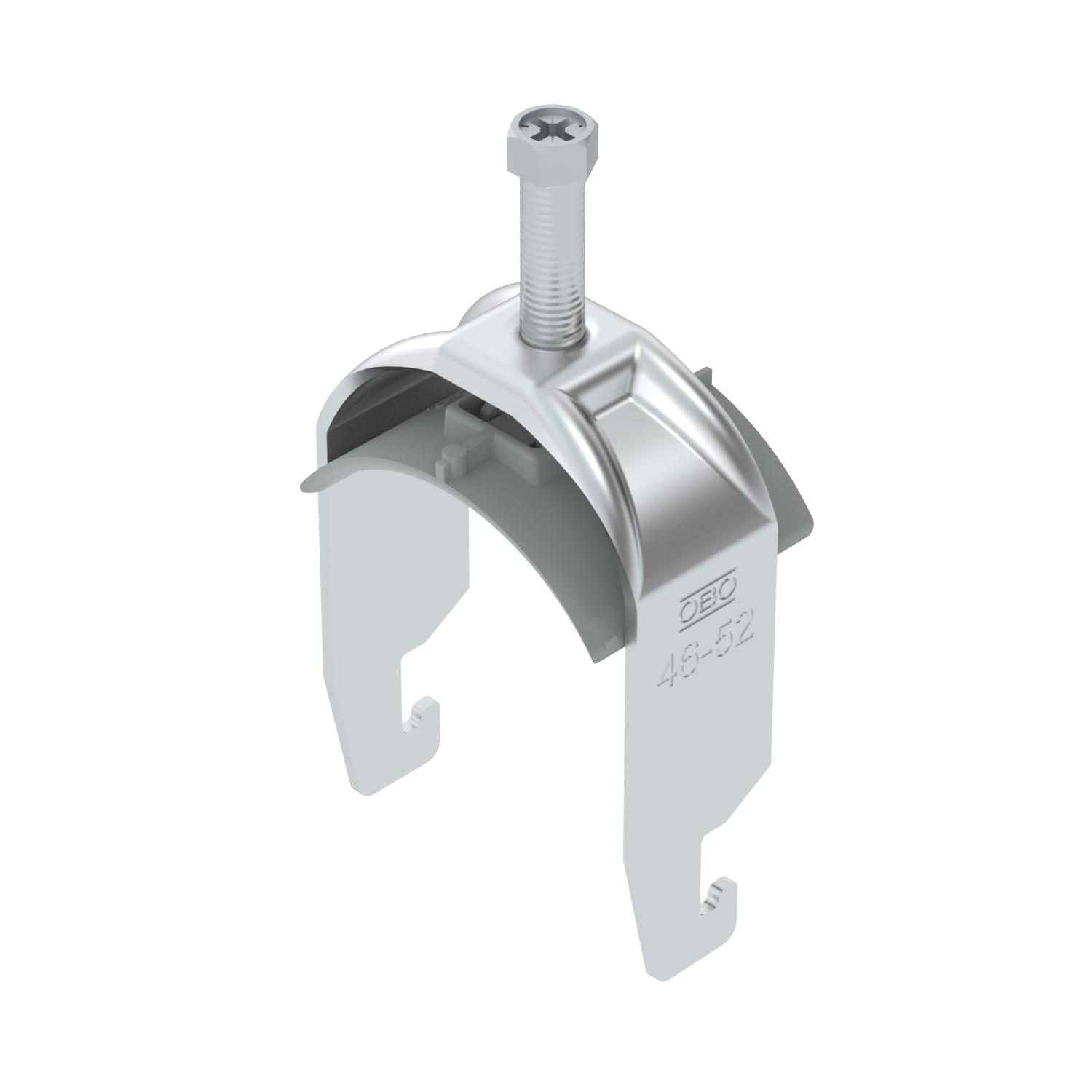 Product descriptionClamp clip with U-foot, plastic pressure sleeve made of polypropylene. For vertical and horizontal mounting of 1 single cable on a C-profile rail. For slot width 18–22 mm. With 1-start screw thread on pressure sleeve, universal hexagonal screw head WAF10, with slot and cross recess. Suitable for assembly indoors and outdoors. We recommend the use of a counter-sleeve.