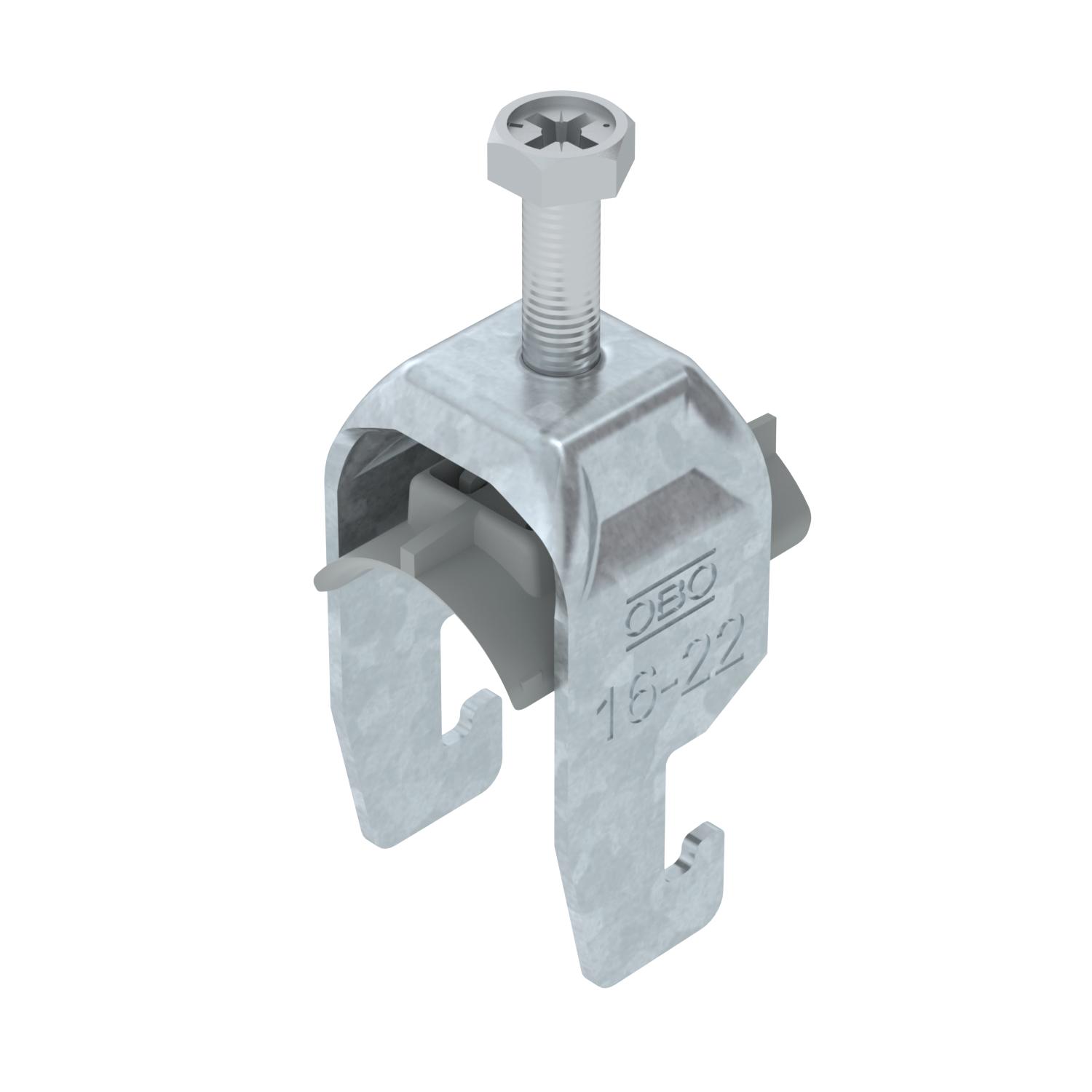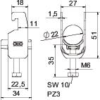 Clamping range D, max. 22 mm Clamping range D, min. 16 mm CO2 Footprint (GWP) Cradle-to-Gate 0,0917 kg CO2e / 1 Piece Dimension 16-22mm Dimension A 22,5 mm Dimension B 27 mm Dimension C 34 mm Dimension G (mm) M6 Dimension H 51 mm Dimension L 35 mm Dimension t 1,5 mm For pipe diameter, max. 22 mm For pipe diameter, min. 16 mm for rail with slot width (with interval), max. 22 mm for rail with slot width (with interval), min. 18 mm Halogen-free yes Height 51 mm Length 22,5 mm Length of external dimensions 34 mm Material Steel Material addition Steel Material of trough Plastic Material quality of trough Polypropylene Max. Tightening torque 3 Nm Mounting type Profile rail Number of cables/pipes 1 Plate thickness 1,5 mm Slot width 10 mm Surface Hot-dip galvanised Surface addition hot galvanised Thread M6 Width 27 mm With counter-trough no With plastic trough yes - All types