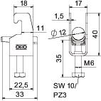 Clamping range D, max. 12 mm Clamping range D, min. 8 mm CO2 Footprint (GWP) Cradle-to-Gate 0,0765 kg CO2e / 1 Piece Dimension 08-12mm Dimension A 22,5 mm Dimension B 17 mm Dimension C 34 mm Dimension G (mm) M6 Dimension H 40 mm Dimension L 35 mm Dimension t 1,5 mm For pipe diameter, max. 12 mm For pipe diameter, min. 8 mm for rail with slot width (with interval), max. 22 mm for rail with slot width (with interval), min. 18 mm Halogen-free yes Height 40 mm Length 22,5 mm Length of external dimensions 34 mm Material Steel Material addition Steel Material of trough Plastic Material quality of trough Polypropylene Max. Tightening torque 3 Nm Mounting type Profile rail Number of cables/pipes 1 Plate thickness 1,5 mm Slot width 10 mm Surface Hot-dip galvanised Surface addition hot galvanised Thread M6 Width 17 mm With counter-trough no With plastic trough yes - All types