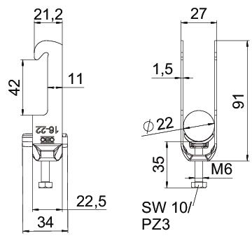 Clamping range D, max. 22 mm Clamping range D, min. 16 mm CO2 Footprint (GWP) Cradle-to-Gate 0,2913 kg CO2e / 1 Piece Dimension 16-22mm Dimension A 22,5 mm Dimension B 27 mm Dimension C 34 mm Dimension G (mm) M6 Dimension H 91 mm Dimension L 35 mm Dimension t 1,5 mm For pipe diameter, max. 22 mm For pipe diameter, min. 16 mm Halogen-free yes Height 91 mm Length 22,5 mm Length of external dimensions 34 mm Material Aluminium Material addition Aluminium Material of trough Plastic Material quality of trough Polypropylene Max. Tightening torque 2 Nm Mounting type Angle profile Number of cables/pipes 1 Plate thickness 1,5 mm Slot width 10 mm Surface addition Untreated Thread M6 Width 27 mm With counter-trough no With plastic trough yes - All types