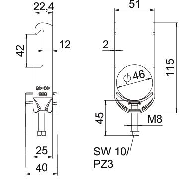 Clamping range D, max. 46 mm Clamping range D, min. 40 mm CO2 Footprint (GWP) Cradle-to-Gate 0,5563 kg CO2e / 1 Piece Dimension 40-46mm Dimension A 25 mm Dimension B 51 mm Dimension C 40 mm Dimension G (mm) M8 Dimension H 115 mm Dimension L 45 mm Dimension t 2 mm For pipe diameter, max. 46 mm For pipe diameter, min. 40 mm Halogen-free yes Height 115 mm Length 25 mm Length of external dimensions 40 mm Material Aluminium Material addition Aluminium Material of trough Plastic Material quality of trough Polypropylene Max. Tightening torque 2 Nm Mounting type Angle profile Number of cables/pipes 1 Plate thickness 2 mm Slot width 10 mm Surface addition Untreated Thread M8 Width 51 mm With counter-trough no With plastic trough yes - All types