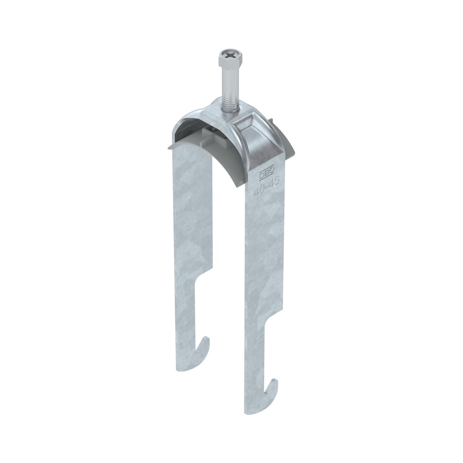 Clamping range D, max. 46 mm Clamping range D, min. 40 mm CO2 Footprint (GWP) Cradle-to-Gate 0,4556 kg CO2e / 1 Piece Dimension 40-46mm Dimension A 25 mm Dimension B 51 mm Dimension C 40 mm Dimension G (mm) M8 Dimension H 167 mm Dimension L 45 mm Dimension t 2 mm For pipe diameter, max. 46 mm For pipe diameter, min. 40 mm Halogen-free yes Height 167 mm Length 25 mm Length of external dimensions 40 mm Material Steel Material addition Steel Material of trough Plastic Material quality of trough Polypropylene Max. Tightening torque 5 Nm Mounting type Angle profile Number of cables/pipes 2 Plate thickness 2 mm Slot width 10 mm Surface Hot-dip galvanised Surface addition hot galvanised Thread M8 Width 51 mm With counter-trough no With plastic trough yes - All types