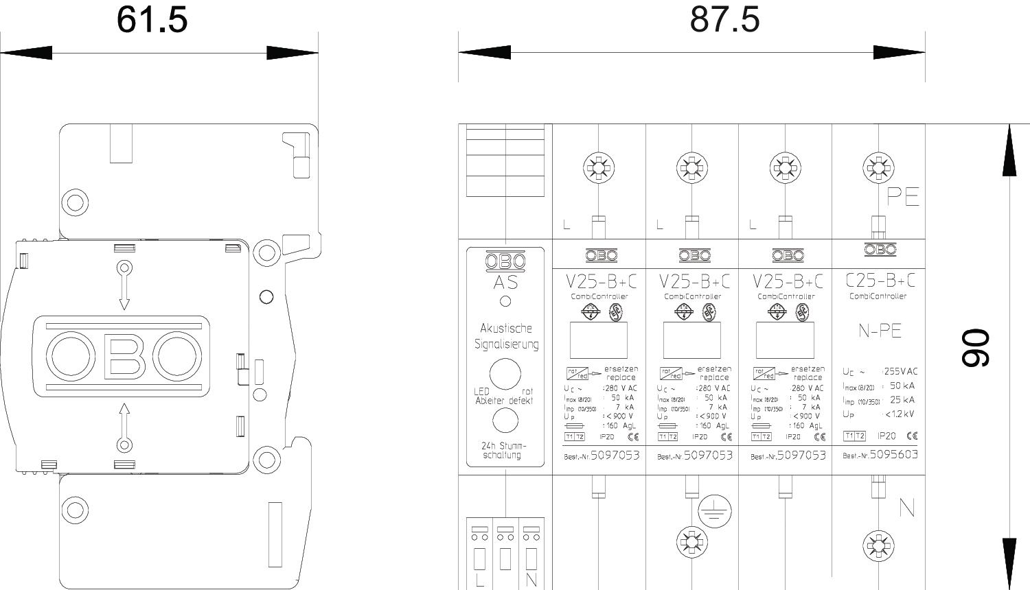 Data sheet V25-B+C 3+NPE+AS / 5097432 , 0.25MB , pdfEU declaration of conformity V25-B+C 3+NPE+AS / 5097432 , 0.04MB , pdfLabel approval EZU-Zertifikat V25 , 0.12MB , pdfSelection aid Selection aid, surge protection , 2.00MB , pdfNo invitation to tender text is available for this product.