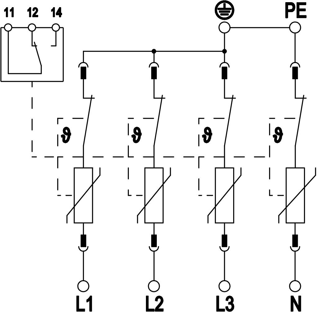 • Lightning current arresting capacity of 12.5 kA (10/350) per pole and up to 50 kA (10/350) in total