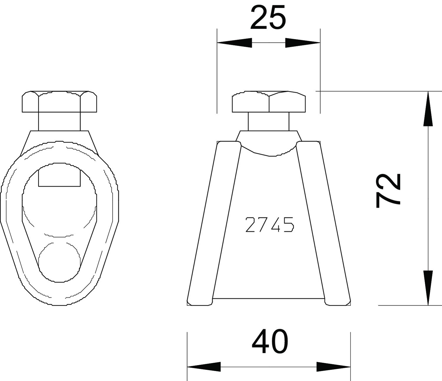 • For round conductor attachments Rd 7–12.5 with hexagonal bolts M10 x 25