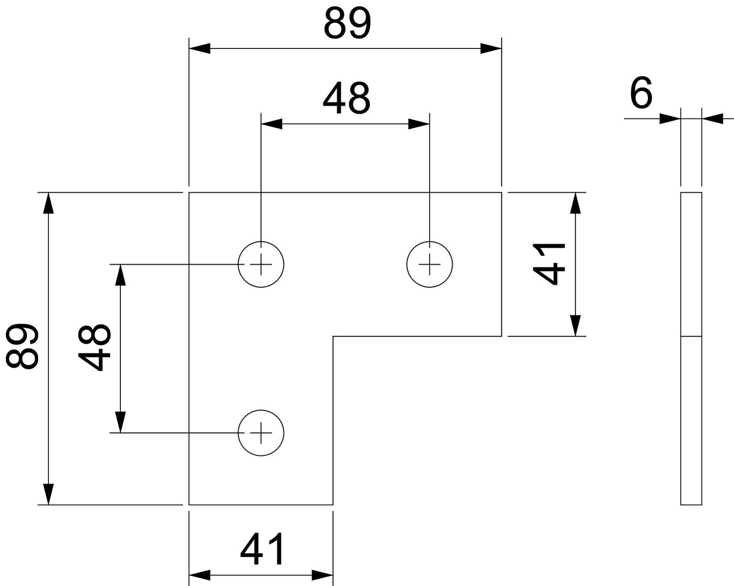 Dimension 95x95x6 Height 6 mm Length 95 mm Material Steel Surface Hot-dip galvanised Width 95 mm - All types
